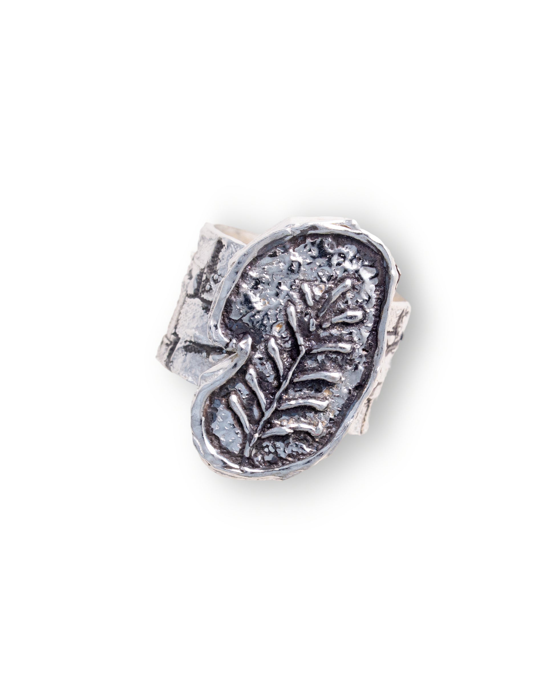 Inspired by the ancient rocks and jar fragments found at Hisham's palace, this silver ring is left raw and unadorned, echoing the natural textures of archaeological remnants.